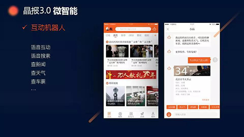 “除了大家熟悉的內容算法智能推薦,我們還為晶報APP3.0增加了語音聯播、互動機器人等功能,讓用戶不用動手指,僅通過語音就能搜索內容,與晶報互動?!?/p>