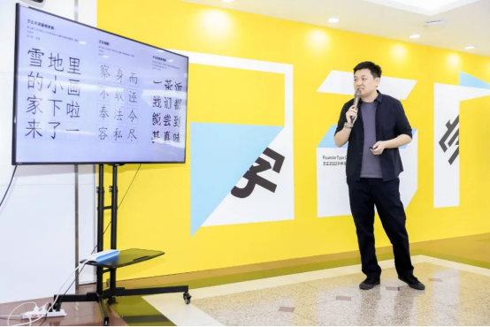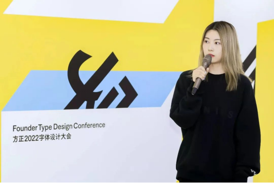 在方正2022字體設計大會上,方正字庫定制項目經理張依晨為大家詳細介紹了方正定制字體服務。在會議現場,方正字庫分別和美的、abC藝術書展、壹基金聯合發布全新品牌定制字體。
