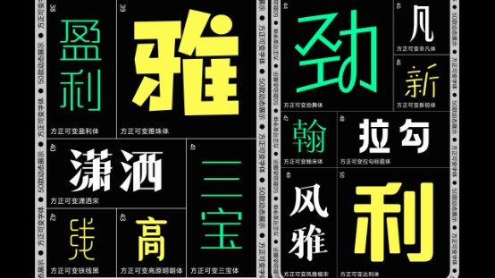 可變字體技術是字庫技術的最新熱點,它允許單個字體文件同時支持多個字體形態,實現單軸或者多軸設計空間,讓設計師獲得前所未有的自由度和操作上的便利性,以及更小體積的字體文件與更快的響應速度。方正字庫緊隨全球技術趨勢,本次大會推出了方正可變蘭亭黑、方正可變悠黑、方正可變悠宋、方正可變風雅楷宋、方正可變忠義宋、方正可變高原明朝體、方正可變嘟黑、方正可變拉勾標題體、方正可變鐵線黑、方正可變絲帛體、方正可變雅珠體、方正可變新綜藝黑、方正可變創黑、方正可變豆神大語文體等50款中文可變字體產品,可以滿足創意者各種不同的需要。
