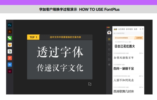 方正字庫推出的“字加”電腦客戶端是一款便捷高效的字體管理工具,它致力于為大家解決設計中遇到的字體問題,包括字體的查找、字體的效果展示及個性化管理本地字庫等,提供更高效、更便捷的用字服務。“字加”可提供包括方正字庫、手跡字庫在內的27個品牌的字體,數量多達上萬款,并可支持在Illustrator、Photoshop、Indesign、Sketch、Coreldraw、PowerPoint、Word、WPS、方正飛翔等軟件中一鍵激活換字的功能;通過“字加”,用戶可以根據需求選擇不同形式的商業授權服務;針對設計師群體,“字加”推出了會員商用授權服務,只需支付較低的價格即可獲得商用授權服務。此外,“字加”還可以支持“智能識字”以及“一鍵補齊缺失字體”等特色功能。目前,在百度中搜索“字加”,即可下載“字加”電腦客戶端,體驗上述功能和服務。