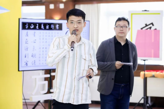 ▲字體應用單元評委代表黑一烊公布并點評獲獎作品